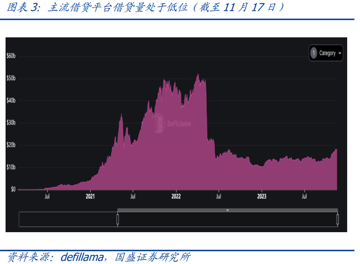 另外,标准化通证在不同智能合约中的使用场景也在不断创新,而其中的每一次创新,都为以太坊生态注入了极大的活力。例如,DAO(去中心化自治组织)的出现开创了一种全新的公司治理模式,与传统公司由董事会代股东治理的模式不同,在一个DAO中,分散的通证持有者可以对组织的方向和策略进行治理。DeFi(去中心化金融)也是一个在以太坊中通证用例的一个创新,其中衍生出了稳定币、借贷、去中心化交易所(DEX)等应用。另外,GameFi、CreatorFi、XtoEarn等都是通证在使用场景中的不断创新。这些创新在前期为以太坊生态注入了活力,并且直到现在还依旧活跃在以太坊上。以去中心化交易所(DEX)和借贷平台为例,过去一年中去中心化交易所的每日平均交易总额大约为20亿美元,而今年3月11日最高超过300亿美元的每日交易额;而借贷平台借贷量大约在130亿美元的规模上下波动,离2021年11月至2022年的5月的500亿美元的量级相差甚远。