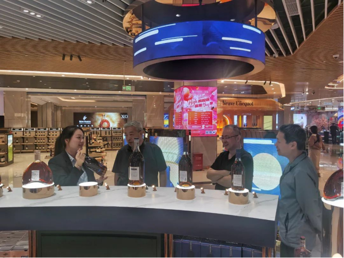 GDF免税城除香化类、电子产品、黄金饰品等产品外,酒水品类丰富,自开业以来,开设了全球面积最大、级别最高的“轩尼诗之家”旗舰店,共引进酒水品牌127个,涵盖了茅台、泸州老窖、汾酒、郎酒等白酒品牌,轩尼诗、马爹利、人头马、麦卡伦等洋酒品牌,以及拉菲、木桐、玛歌等红酒品牌,覆盖了国内国际闻名已久的高端酒水品牌。值得一提的是,保乐力加全球旅游零售在GDF免税城开设了亚洲最智能的马爹利精品店,顾客可以在店内体验多元化的虚拟及实体零售元素,包括数字化销售单元、产品个性化定制、VIP 品鉴,以及“马爹利机器人调酒师”无接触品鉴互动功能,为消费者提供了现代化和个性化的购物体验。