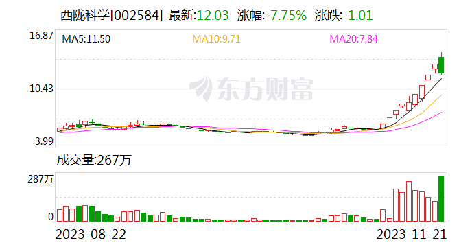 11月20日,西陇科学再发一则股票交易异常波动公告。据公告内容显示,自11月8日至11月20日,公司股价“9天8板”。