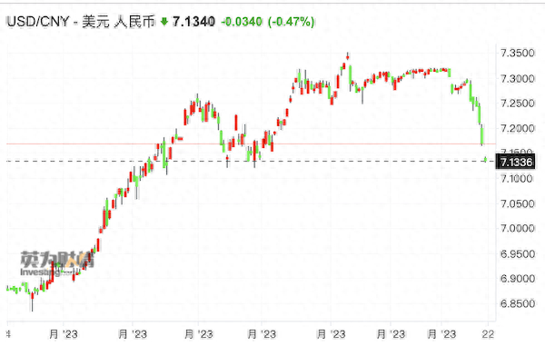 “在接下来的几天里,美元对人民币可能会在7.15~7.17的范围内波动。”周浩表示。嘉盛集团资深分析师辛普森(Matt Simpson)则对记者称:“7.12是关键的200日均线支撑位,可能会出现获利了结。而市场可能会在下个月迎来更大的波动,届时将有美联储议息会议和中央经济工作会议。”