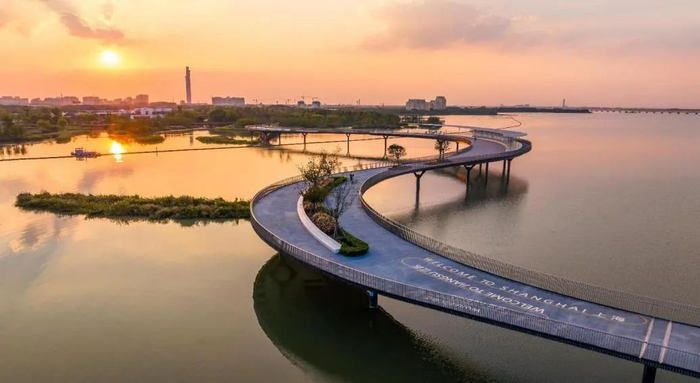 作为沪苏首座大型景观步行桥,桥总长585.7米,不仅连接着上海青浦和江苏吴江,还将元荡湖两岸的湿地景观和环湖绿道对接,串联起周边丰富的生态旅游资源和人文资源。