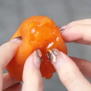 水润透亮的溏心,保留了柿子的原香味,吃起来像冰淇淋又像果冻!