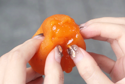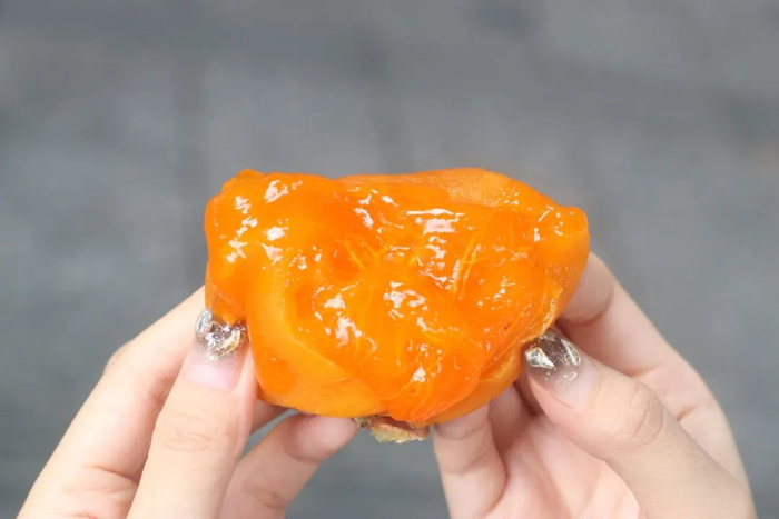 抿嘴一吸,细腻丝滑的流心“哧溜”滑入嘴里,一水的蜜甜,鼻尖轻嗅的柿子香,叫人觉得琼浆玉液都不过如此了!