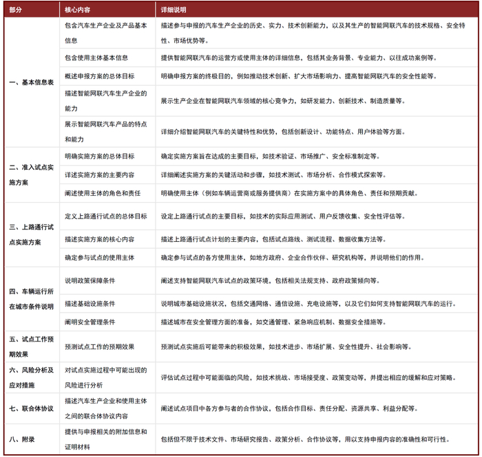图表:《智能网联汽车准入和上路通行试点申报方案(模板)》内容概括