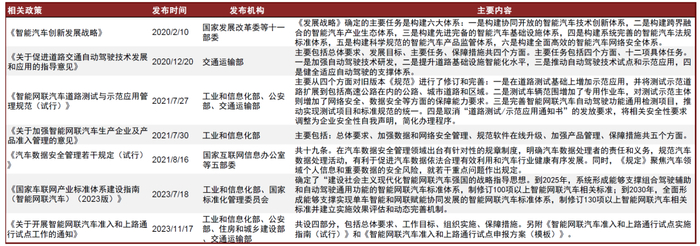 图表:我国智能网联汽车主要相关政策梳理