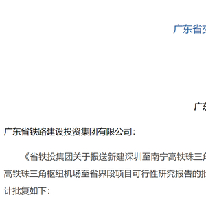 11月21日,广东省交通运输厅发布消息,新建深圳至南宁高铁珠三角枢纽机场至省界段项目初步设计获批。一般而言,初步设计获批后不久就会正式开工,这也意味着南深高铁即将全线开工。