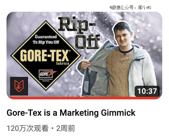 两周前,油管大神发布了一条视频爆锤 Gore-tex 营销骗局,讲述品牌如何神化 Gore-tex 特性,混淆透湿和透气这两大相悖概念。