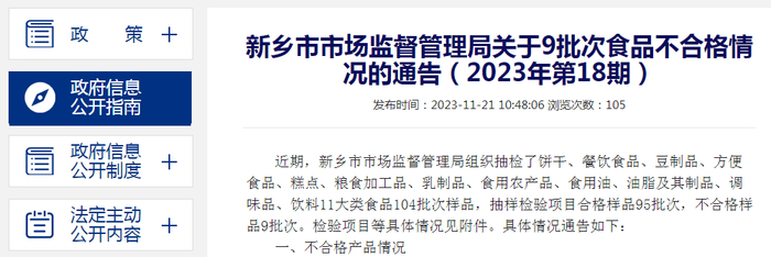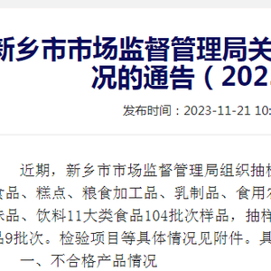 河南省新乡市市场监督管理局关于9批次食品不合格情况的通告(2023年第18期)