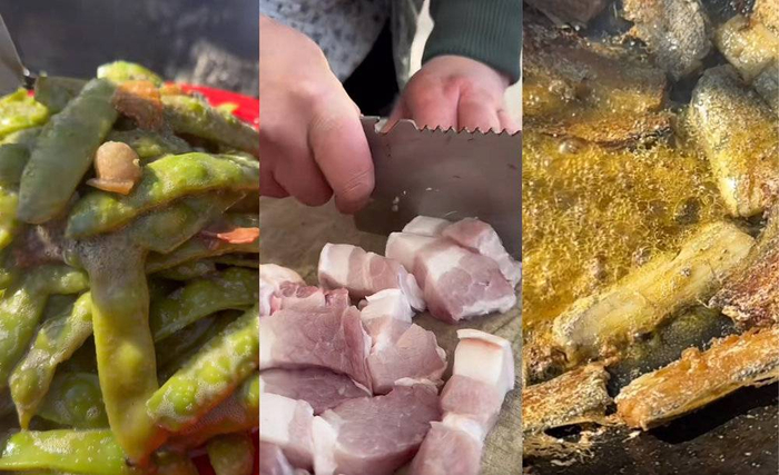 对于只在菜市场见过猪肉的城市人,杀猪菜的小视频比B级片还刺激。绑猪腿、烫猪毛、杀猪、解剖、把每个器官切割好,再支几口大锅,把猪的不同部位煮熟,切块下锅爆炒——这幅热闹的景象,愈加衬托自己手里凉透的预制菜是多么糟蹋粮食。