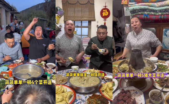 在每一条视频结尾,雨姐的大嗓门喊出一句相同的口播台词:“农村就这生活,简简单单一顿四个菜,开造!”