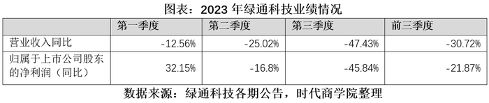 随后,绿通科技业绩同比下滑幅度逐季不断加大。2023年第二季度,该公司营收同比减少25.02%,归母净利润增速由正转负,同比下滑16.8%;2023年第三季度,其营收同比下滑幅度更是达到47.43%,归母净利润同比减少45.84%。