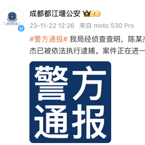 随后11月22日中午,成都都江堰公安发布通报表示,经侦查查明,陈某杰(男,39岁)涉嫌开设赌场罪。目前,陈某杰已被依法执行逮捕。案件正在进一步侦办中。