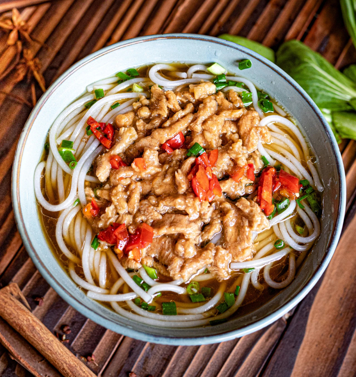 如拌粉之于南昌,热干面之于武汉,在铅山人心中,一碗热气腾腾的烫粉是最好吃的美食。清白的米粉、鲜亮的汤底,鲜嫩的肉丝,再加上铅山人喜欢的辣椒和胡椒粉,酣畅淋漓地嗦粉是独具烟火气的诠释。