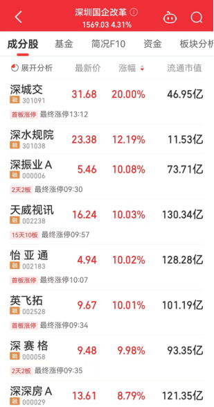 深圳国企改革概念股走强
