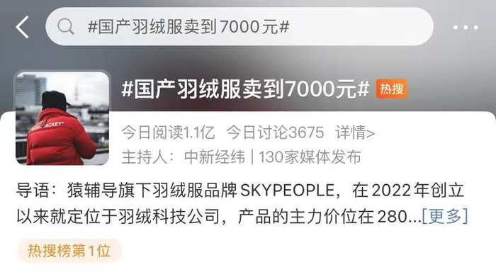 今天,#国产羽绒服卖到7000元#冲上了微博热搜,引发了网友热烈讨论。