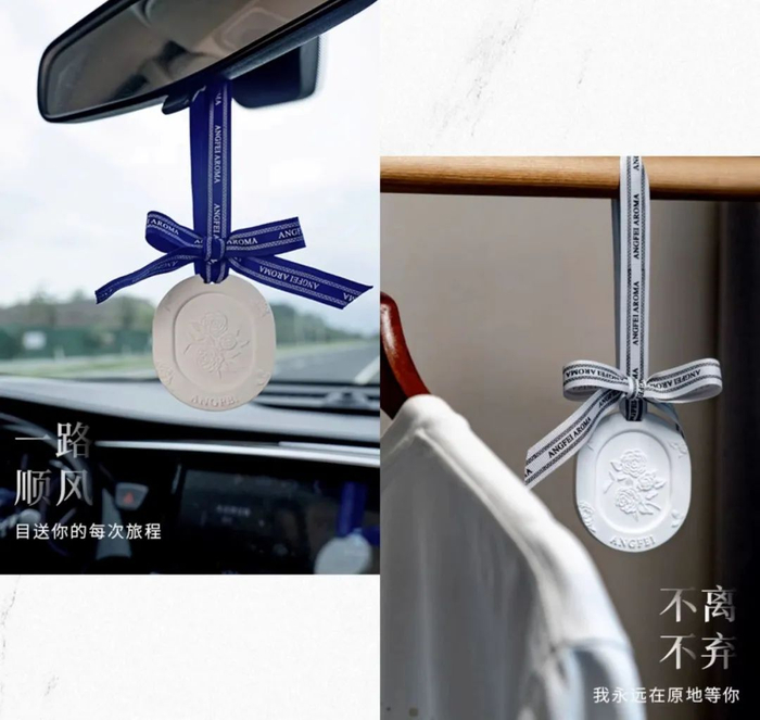 这款香挂由香水级原料浸泡的特质石膏瓷粉制成