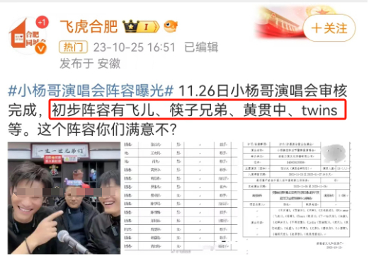 因为前几天一条热搜刷屏,小杨哥居然要开演唱会了,“小杨甄选群星演唱会”这个月26号将在合肥奥体中心举行。
