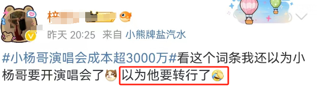 看到这个天文数字,再联系一下小杨哥开演唱会,我都能想象他的内心戏: