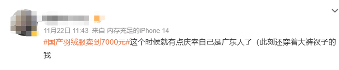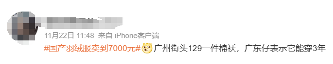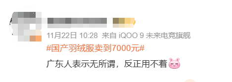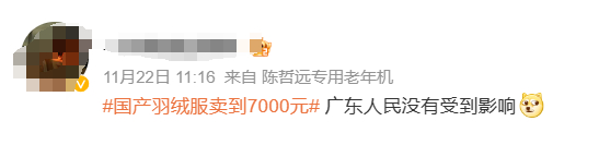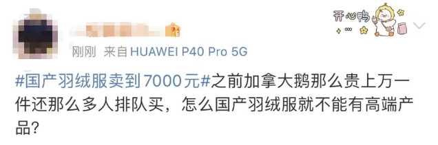 国产羽绒服最近已不止一次“贵”上社交媒体热搜了。11月3日,#你能接受千元以上的国产羽绒服吗#的话题就登上热搜。当时网易严选推出的“2023新款中国大鹅羽绒服”因其过千元的售价,在社交平台上引发广泛讨论。