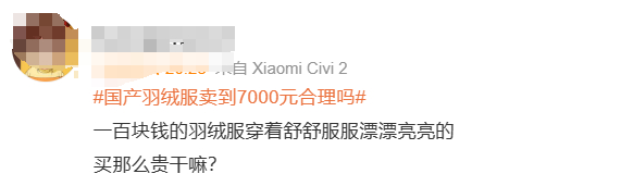 但也有观点认为,国产羽绒服高端化步子迈得太快,很容易把原本的消费者“吓跑”。