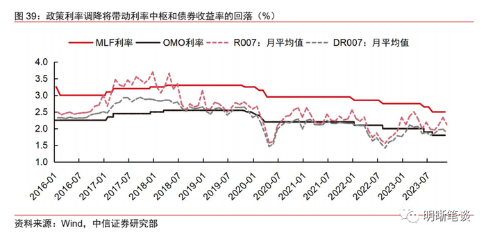 我国稳增长政策的发力离不开宽松货币政策的助力。待宽货币政策发力后,利率可能重回下行通道,利率中枢也可能会随之下移。全年利率可能呈现先上后下的走势。稳增长政策的助力离不开偏松货币政策的配合,在实际利率偏高、内需仍有待提振的环境下,下调政策利率预计将是2024年合理的政策的选择,预计一季度和三季度可能是降息落地的时点。降息落地后,债券利率中枢有望随之下移,因此,全年利率可能呈现出先上后下的走势。