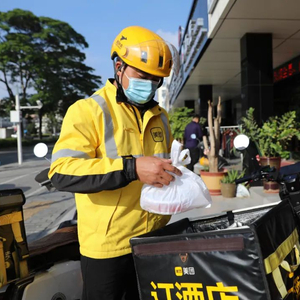 外卖员在配送餐食