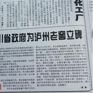 1997年7月7日《市场报》刊发报道《四川省政府为泸州老窖立碑》