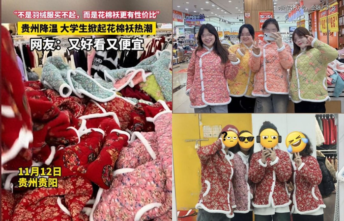 前几天,贵州的女大学生集体去超市挑选穿花棉袄的视频火了,网上还掀起了买花棉袄的热潮,网友们说,这个“又好看又便宜”: