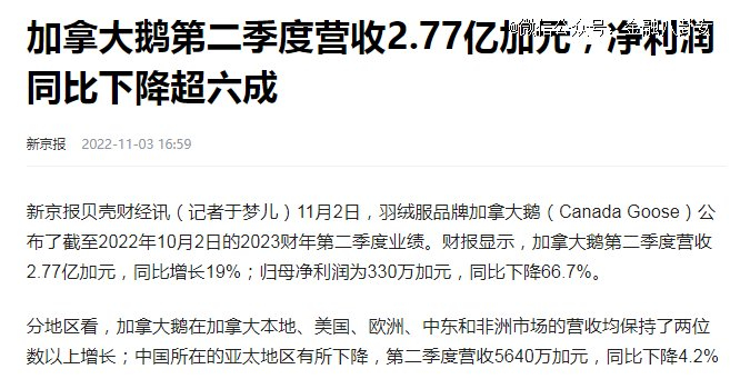 这里面也有他们自己的问题,2021年底,相关部门发现加拿大鹅涉嫌虚假宣传,以普通鸭绒代替广告里的“Hutterite群落鹅绒”,事发后短短10天内,加拿大鹅市值蒸发84亿。