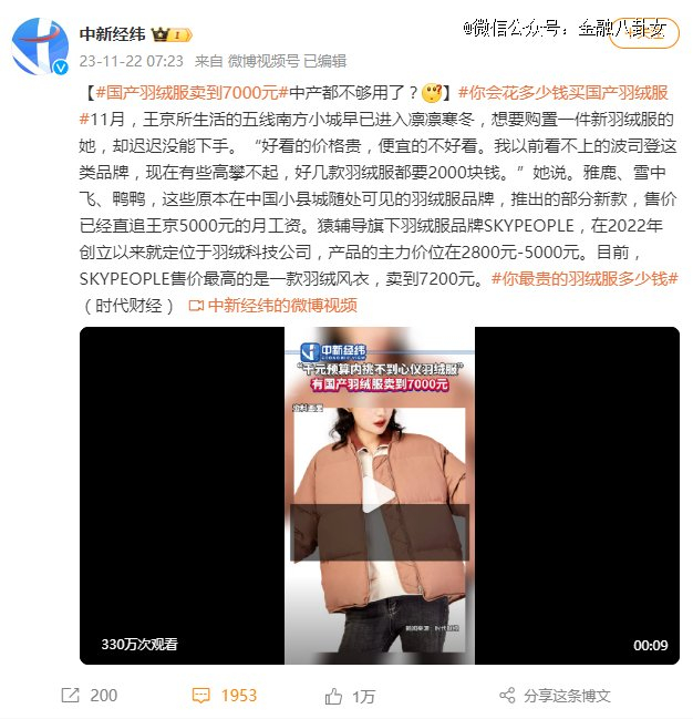 其实,也不是说羽绒服就没人买了,而是贵的羽绒服失了宠。