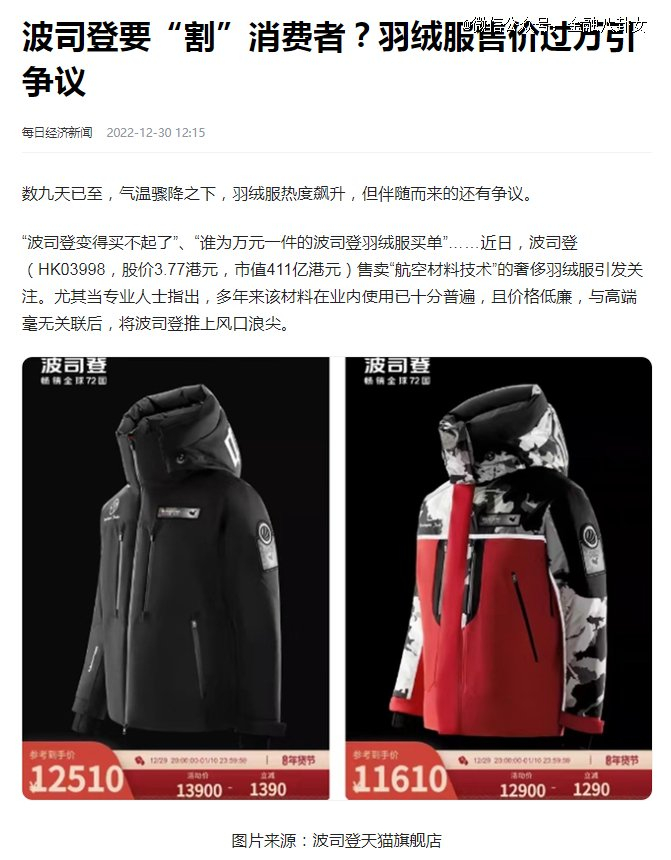《波司登要“割”消费者?羽绒服售价过万引争议》每日经济新闻