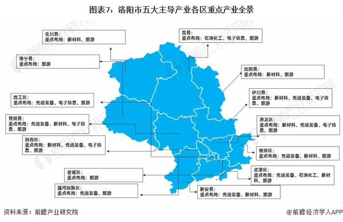 分区域看,洛龙区重点发展新材料、先进装备、电子信息与旅游产业;偃师区重点发展先进装备、新材料与旅游产业;孟津区重点发展先进装备、石油化工、新材料与旅游产业。具体情况如下所示: