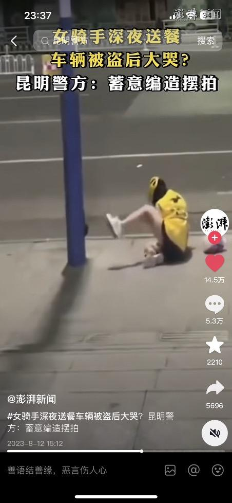 警方辟谣:女网红假冒女骑手摆拍深夜送餐后车辆被盗