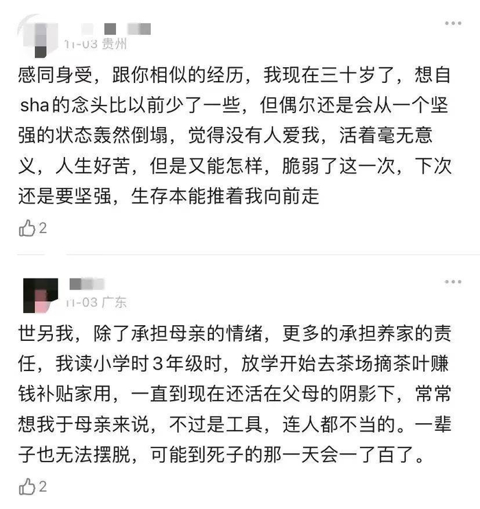 豆瓣小组“来自农村的大学生“里,小镇做题女孩对自己母亲复杂的情感占了半壁江山,偶尔是记录母亲的人生故事,更多时候妈妈是自己人生痛苦的主要成因。