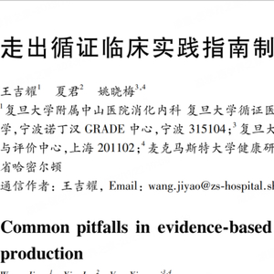 该主题报告名为《走出“循证临床实践指南”制定的误区》,也在今年9月发表于《中华消化杂志》,由王吉耀教授和宁波诺丁汉大学夏君教授、复旦大学附属儿科医院临床实践指南制作与评价中心姚晓梅教授合著。