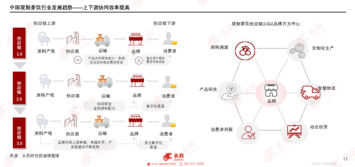 我国现制茶饮品牌日益重视供应链建设,茶饮供应链已进入3.0时期,上下游联动日趋紧密。