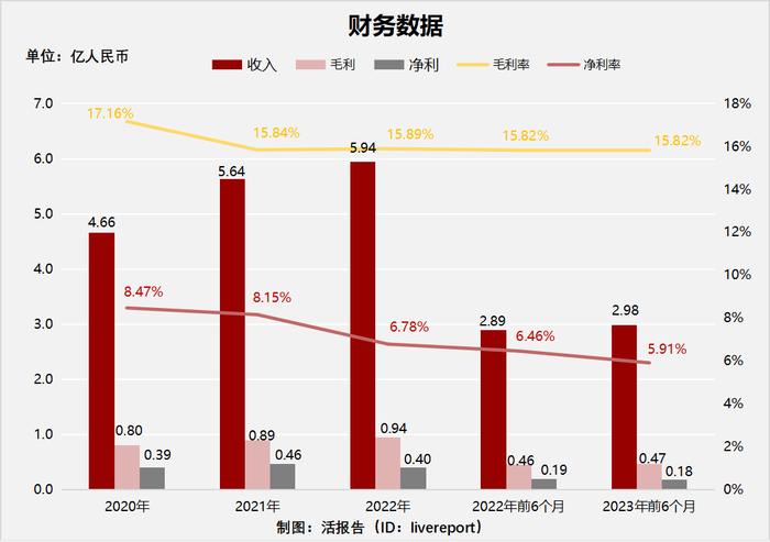 收入分别约为人民币4.66亿元、5.64亿元、5.94亿元、2.89亿元及2.98亿元,年复合增长率为12.96%;