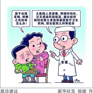 赵成松提示,由于目前就诊量较大,孩子如果是刚出现症状,不建议立即前往大型三甲医院就诊,可先前往有儿科资质的社区医院及二三级医院进行首诊。医院密闭的环境容易出现交叉感染,因此不建议家长反复就诊。