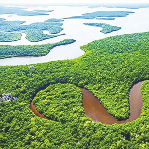 美国佛罗里达州南部的大沼泽地,北起奥基乔比湖,向南延伸至佛罗里达湾,是一片长约160公里、宽达80—120公里的淡水湿地、河口和沿海生态系统区域。该地区降水充沛,平均年降水量1000—1650mm,属于石灰石底质的浅水盆地,现有面积约1万平方公里,是美国大陆最大的亚热带荒原,也是世界上最具特色的湿地生态系统。然而,自19世纪以来,随着佛罗里达州人口的迅速增长,城市和乡村的快速发展,对大沼泽地的开发也日益加剧。从大沼泽地现有面积和历史面积的对比可以看出,经过几个世纪的农业和城市的发展,大沼泽地原始的生态区域范围不断缩小。人类的活动严重破坏了大沼泽地的生态系统,其水系结构发生了巨大变化,水质、水量、水资源分布和水文过程受到严重破坏。为此,美国联邦政府进行了较为系统的治理。