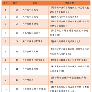 自11月3日起,央行、外汇局接连刊发13篇文章,这些文章被收录在“贯彻落实中央金融工作会议”专栏中,从货币政策、利率市场、人民币国际化、防范化解风险、征信、对外开放、绿色金融、外汇市场管理、跨境贸易外汇便利化改革等多个角度,全方位分析了金融高质量发展面临的形势,部署当前和今后一个时期的金融工作,勾勒出金融强国路线图,释放诸多政策信号。