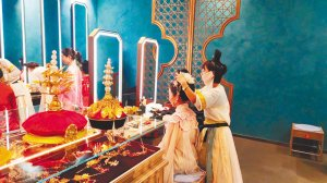 “你可以是一位即将远嫁塞外的公主,也可以不用宫斗就登上皇后宝座,更能成为一个仗剑走江湖的侠客,在餐厅中你就能现场‘穿越’成任何一个身份。”周末,芸芸和室友在道外区红门御宴里享受了一场“沉浸式美食”。她告诉记者,年轻人喜欢cosplay、打卡、做任务,现在在饭店里就全能实现,对于年轻人来说,去一个地方能体验更多内容,省时省钱。“每一个人都有一个古装梦,我们通过设置不同场景、关卡,让顾客在餐厅中‘圆梦’。” 红事会集团总经理、红门御宴负责人马楠告诉记者,餐厅给予顾客沉浸式体验,他们在妆造后立即进入了角色,在餐厅中玩游戏、打卡、看演出、学文化、享美食。