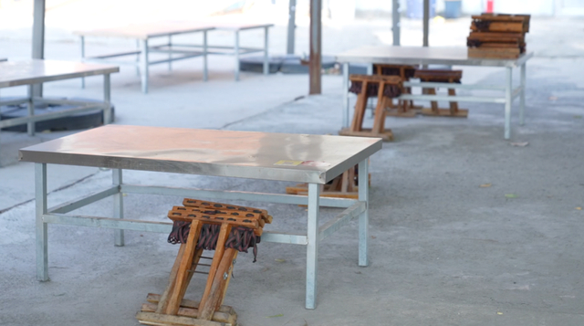 在一个汽车修理厂大院里,有一家露天烧烤店,夏天营业,冬天停业。
