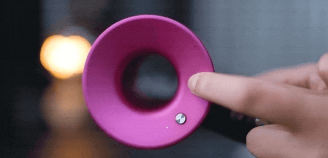 戴森吹风机无扇设计、中空圆环的造型,金属科技感十足。