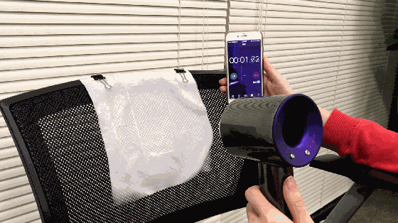 我们选择了一张湿透了的纸巾,用普通吹风机和戴森吹风机分别吹干,计算一下用时。▼