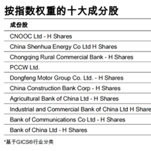 成分股方面,截至2023年10月31日,该指数前十大权重股包括中国海洋石油、中国神华、重庆农村、商业银行、电讯盈科、东风集团股份等,前十大权重股合计占比约30.7%。(数据来源:标普道琼斯指数公司,上述个股仅为举例说明,无特定推荐之意,并可能根据指数编制方案进行调整。)