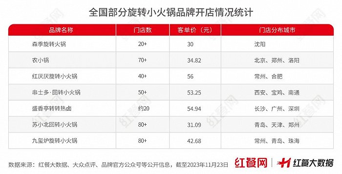 据红餐网观察,北京、广州、长沙、沈阳、天津等不同层级的城市,都出现了一批旋转小火锅的身影。
