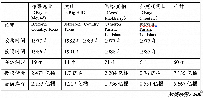 当前,美国SPR共有60个盐穴储油,集中分布于墨西哥湾沿岸,共储备5.667亿桶石油,储备品种以高硫原油为主。