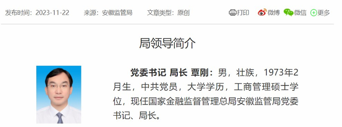 覃刚,1971年11月出生,此次履新前任国家金融监督管理总局宁波监管局党委书记、局长、一级巡视员。此前曾担任宁波银保监局党委书记、局长。