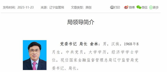 俞林, 国家金融监督管理总局辽宁监管局党委书记、局长。从公开资料显示的履历来看,俞林曾任原银保监会办公厅副主任,原安徽银保监局副局长,原内蒙古银保监局党委副书记、副局长;2022年7月官网信息显示,俞林已在原内蒙古银保监局升任为党委书记、局长;随后成为金融监管总局内蒙古监管局首任党委书记、局长。