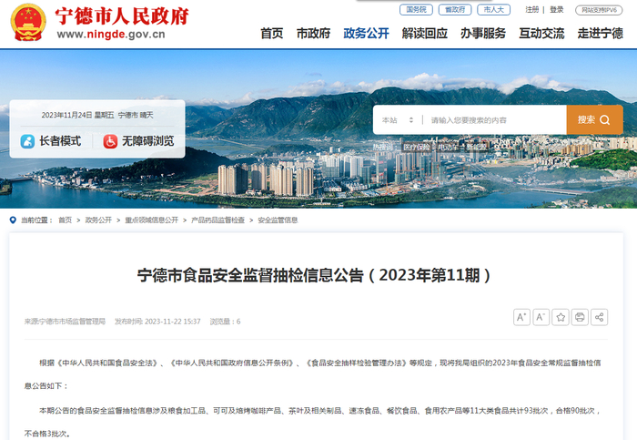 福建省宁德市食品安全监督抽检信息公告(2023年第11期)